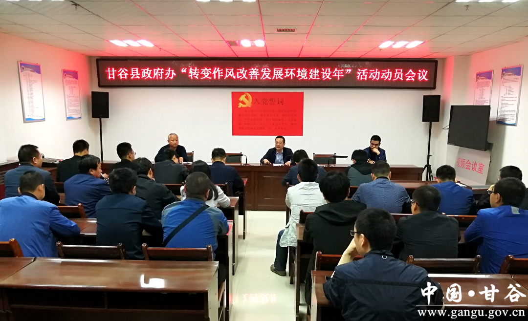 5月21日,甘谷縣政府辦公室召開“轉(zhuǎn)變作風(fēng)改善發(fā)展環(huán)境建設(shè)年”活動(dòng)動(dòng)員會(huì)議,傳達(dá)了省市縣“轉(zhuǎn)變作風(fēng)改善發(fā)展環(huán)境建設(shè)年”活動(dòng)動(dòng)員大會(huì)精神,貫徹落實(shí)黨中央和省市縣委關(guān)于作風(fēng)建設(shè)的新部署新要求,安排部署政府辦公室“轉(zhuǎn)變作風(fēng)改善發(fā)展環(huán)境建設(shè)年”活動(dòng)。