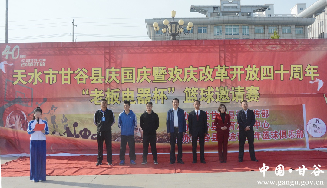 10月1日,甘谷縣慶國慶暨歡慶改革開放四十周年“老板杯”籃球邀請(qǐng)賽開賽?h委常委、宣傳部長張慶元出席開幕式。
