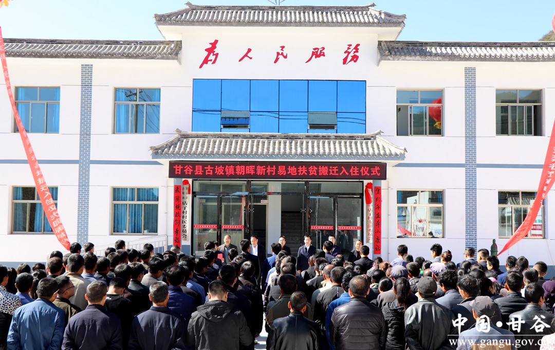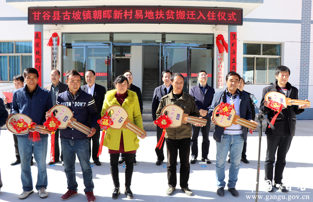 山明水凈菊花香,樹(shù)樹(shù)深紅出淺黃。10月10日,甘谷縣古坡鎮(zhèn)舉行朝暉新村易地扶貧搬遷入住儀式。省發(fā)改委利用外資處處長(zhǎng)成偉;縣委常委、常務(wù)副縣長(zhǎng)孟曉龍,縣委常委、副縣長(zhǎng)王志高,副縣長(zhǎng)李蘭平出席儀式;縣發(fā)改局、住建局、規(guī)劃局、財(cái)政局、水務(wù)局、恒通公司等部門(mén)單位負(fù)責(zé)人及鎮(zhèn)村兩級(jí)干部及住戶(hù)的代表工180多人參加儀式。