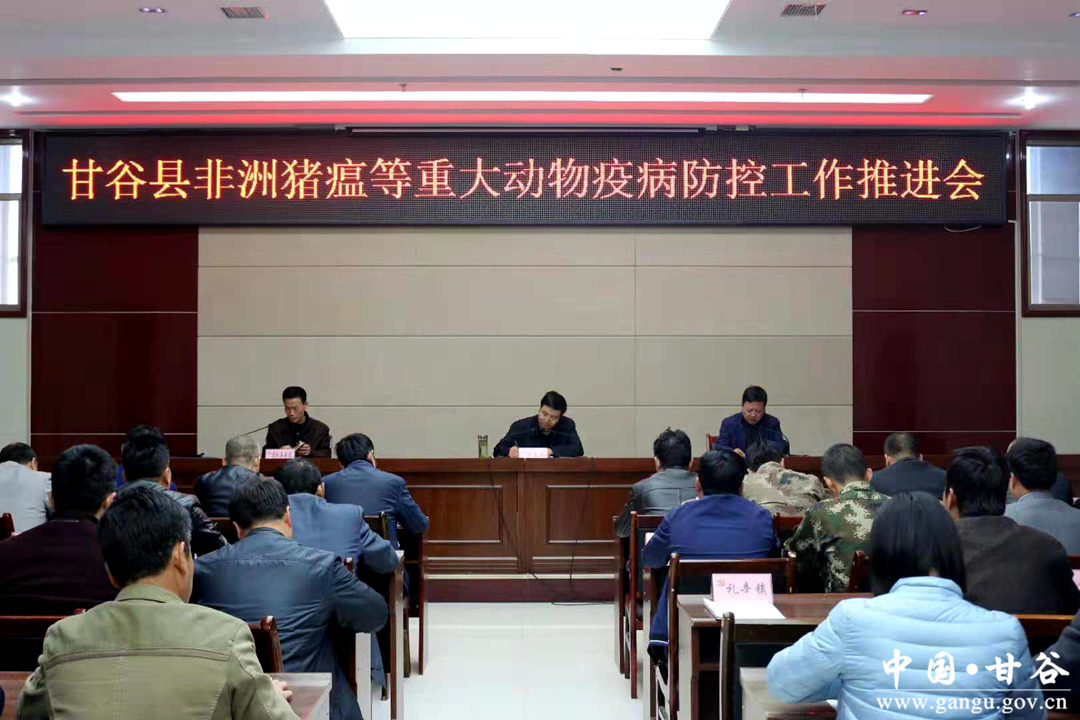10月31日,甘谷縣召開非洲豬瘟等重大動物疫病防控工作推進(jìn)會。副縣長李蘭平出席會議,縣畜牧獸醫(yī)局、重大動物疫病指揮部各成員單位、各鄉(xiāng)鎮(zhèn)分管負(fù)責(zé)人及鄉(xiāng)鎮(zhèn)獸醫(yī)站長共計50 多人參加會議。