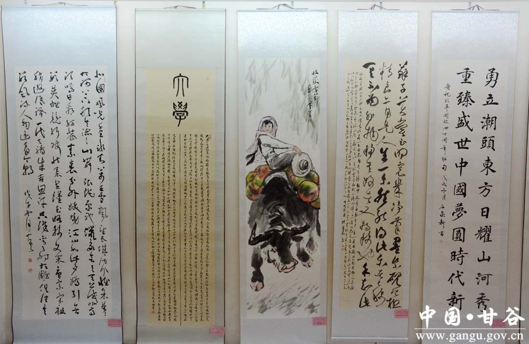 12月27日,甘谷縣委書記申君明,縣政協(xié)主席馬驥,縣委常委、紀(jì)委書記、監(jiān)委主任謝輝,縣委常委、組織部長馮建新,縣委常委、大像山鎮(zhèn)黨委書記葛彥迪來到展廳,參觀甘谷縣慶祝改革開放四十周年“暢想新時(shí)代 聚力新甘谷”書畫攝影詩詞作品展。