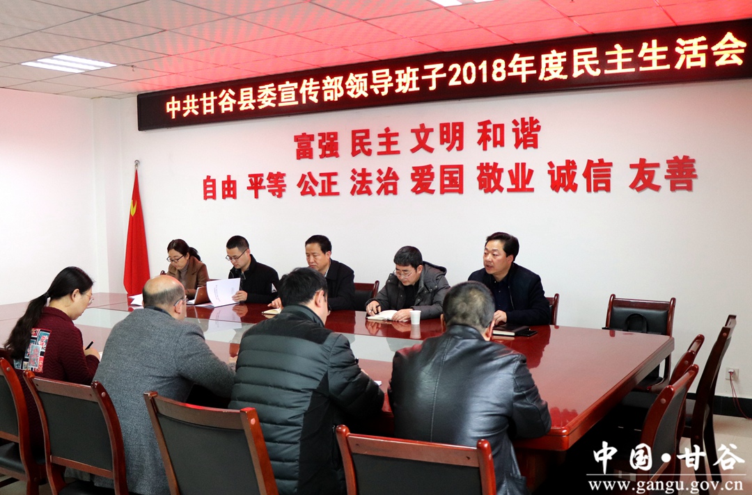 2月26日,甘谷縣委宣傳部領(lǐng)導(dǎo)班子召開2018年度民主生活會(huì)。會(huì)議以強(qiáng)化創(chuàng)新理論武裝,樹牢“四個(gè)意識(shí)”,堅(jiān)定“四個(gè)自信”,勇于擔(dān)當(dāng)作為,以求真務(wù)實(shí)作風(fēng)堅(jiān)決把黨中央決策部署落到實(shí)處為主題,深入查擺問題,深刻剖析原因,認(rèn)真進(jìn)行自我檢查和黨性分析,嚴(yán)肅開展批評(píng)和自我批評(píng)。