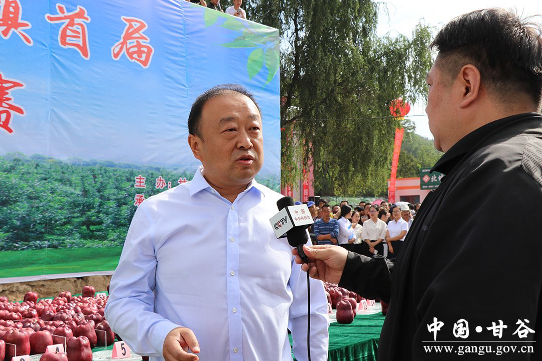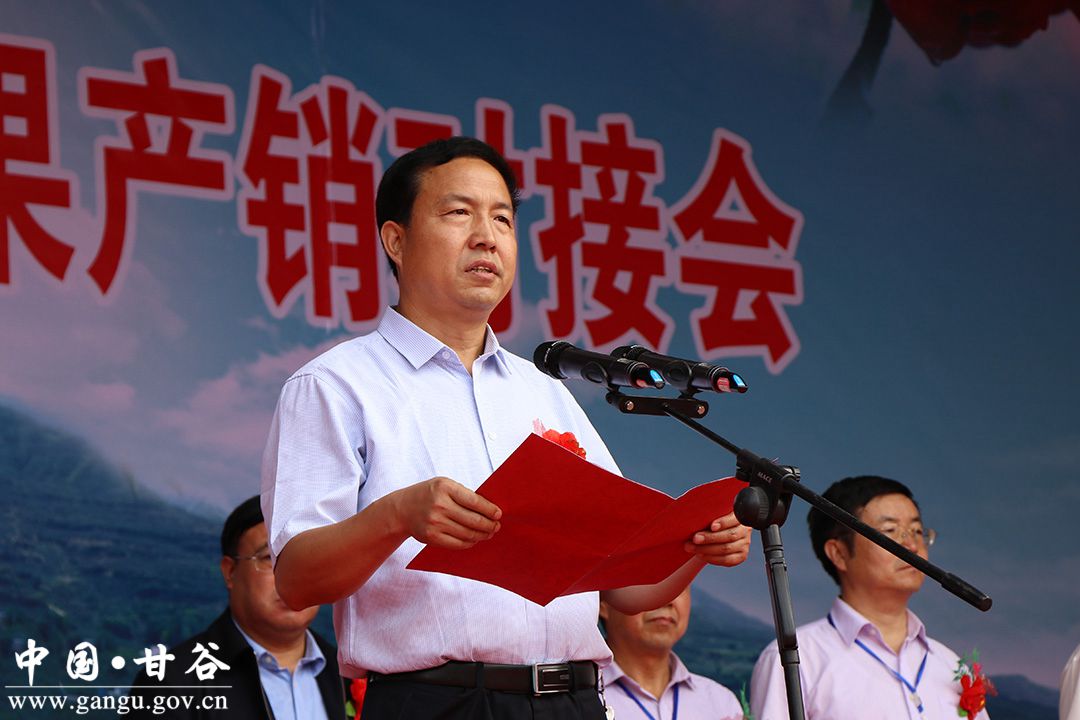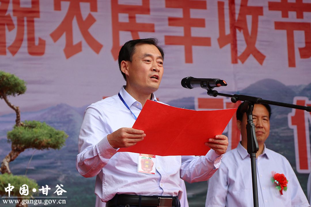 (縣委副書記、縣長吳健宣布甘谷縣慶祝農(nóng)民豐收節(jié)暨蘋果產(chǎn)銷對接會開幕)
