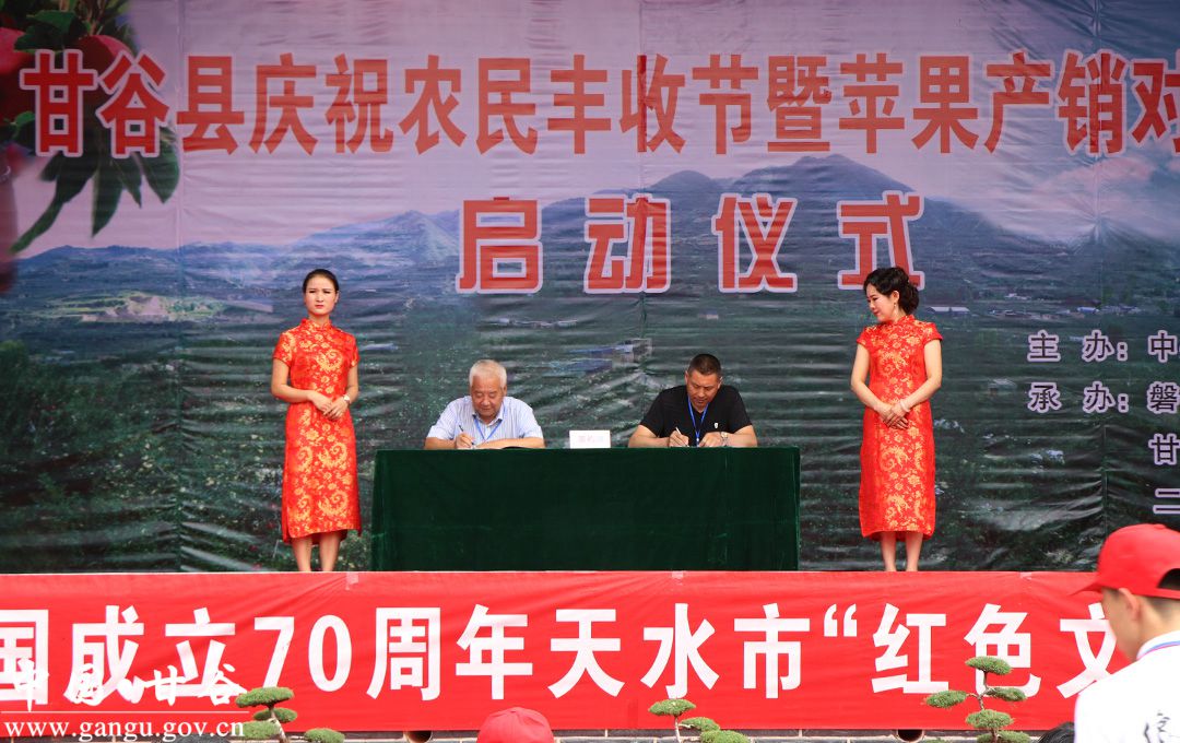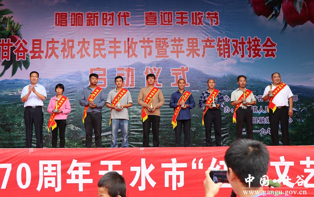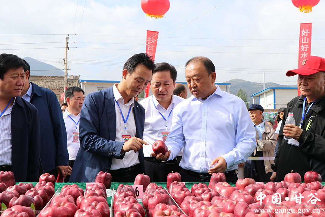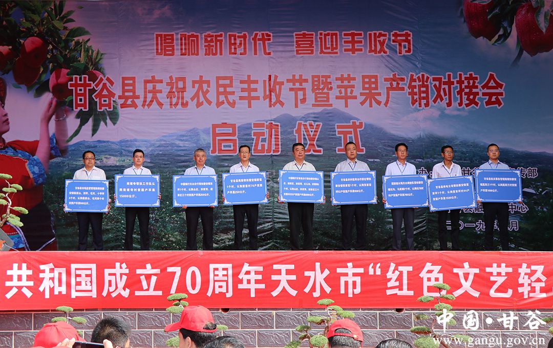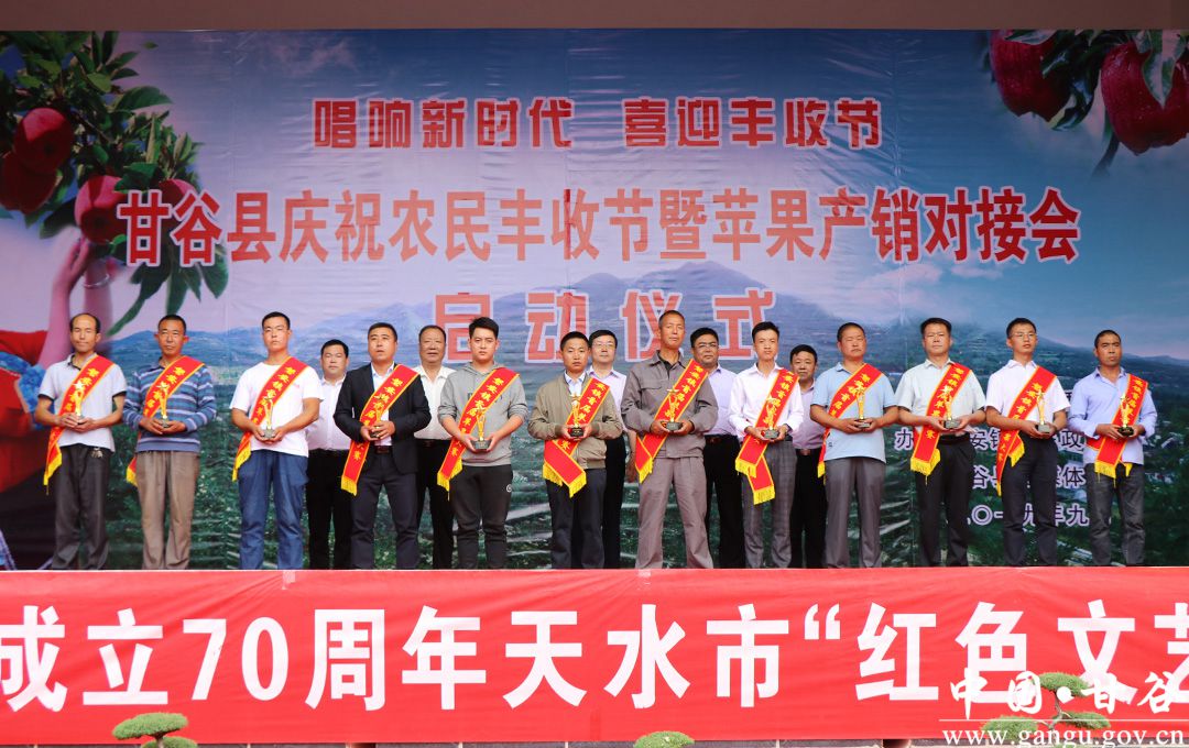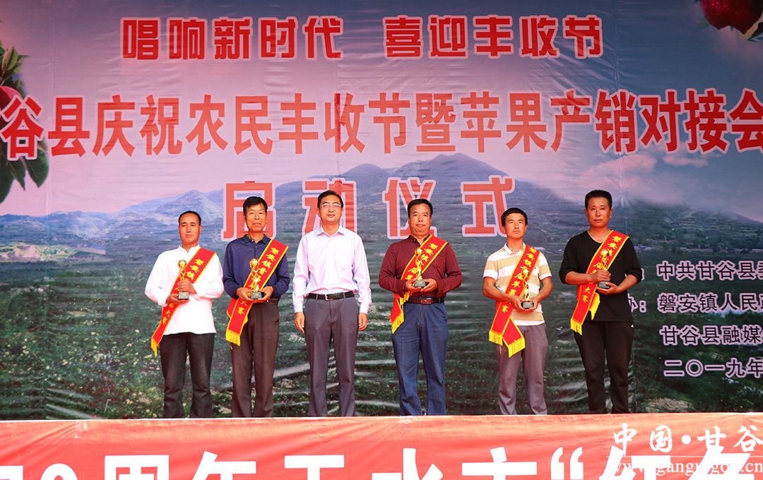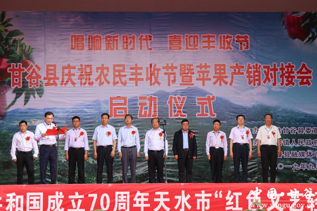 金風送爽,蛇果飄香,9月6日,甘谷縣慶祝中國農(nóng)民豐收節(jié)暨蘋果產(chǎn)銷對接會開幕式在磐安鎮(zhèn)北坡寺村隆重舉行?h委副書記、縣長吳健,縣政協(xié)主席馬驥,縣委副書記馮偉,縣委常委、宣傳部長張慶元,縣人大常委會副主任劉仰賢、頡明軍,副縣長李蘭平、杜興,縣政協(xié)副主席郭長勝等縣四大組織在家領(lǐng)導出席開幕式;各鄉(xiāng)鎮(zhèn)、縣直有關(guān)部門負責人,磐安籍在外人士、市縣果業(yè)專家、外地客商、縣內(nèi)部分農(nóng)民專業(yè)合作社代表、鎮(zhèn)村干部和附近群眾共計1500余人參加了開幕式。
