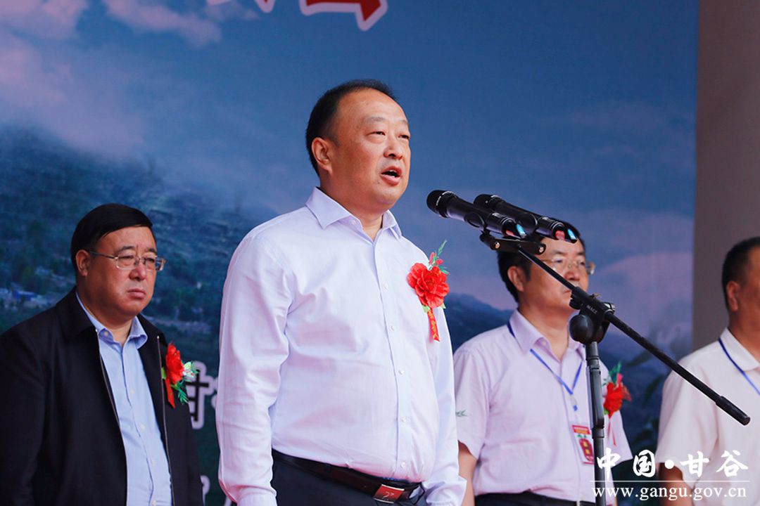 張慶元在致辭中說,今秋,全縣蘋果實現(xiàn)增產(chǎn)豐收,這是我縣決勝脫貧攻堅、助推產(chǎn)業(yè)發(fā)展、促進農(nóng)民增收的重要成果,更是全縣廣大干部群眾苦干實干、聚力脫貧的熱切期盼。通過各項慶;顒雍托麄魍平楣ぷ鞯年懤m(xù)展開,這次活動必將成為加深友誼、共謀發(fā)展的紐帶和橋梁,助力全縣精準脫貧,對推動蘋果產(chǎn)業(yè)發(fā)展起到極大的促進作用。希望全縣廣大干部群眾以此次慶祝農(nóng)民豐收節(jié)活動為契機,在慶豐收、話豐收的同時,凝心聚力,加快產(chǎn)業(yè)發(fā)展步伐,提升果品檔次質(zhì)量,助推脫貧攻堅,共同譜寫甘谷縣社會經(jīng)濟發(fā)展新篇章。