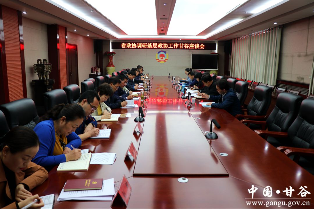 9月19日,省政協(xié)委員工作委員會主任鐘進(jìn)良為組長的調(diào)研組到甘谷縣調(diào)研“市縣政協(xié)工作制度化”工作情況,征求基層政協(xié)對省政協(xié)工作的意見建議?h政協(xié)主席馬驥,縣政協(xié)副主席董成斌、陳旭、董德福出席座談會。
