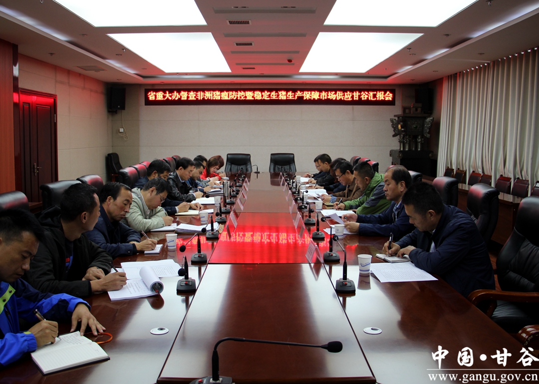 10月14日,省重大辦督查甘谷縣非洲豬瘟預(yù)防暨穩(wěn)定生豬生產(chǎn)保障市場供應(yīng)情況。副縣長杜興出席會議,縣直相關(guān)部門參加會議。