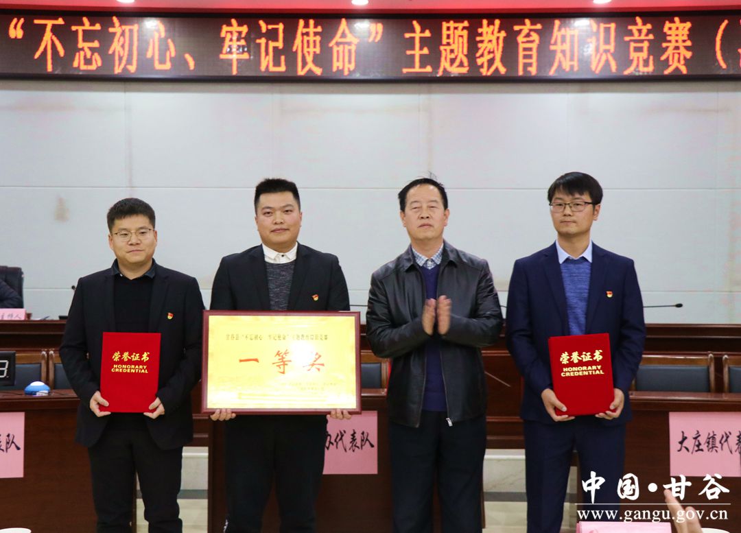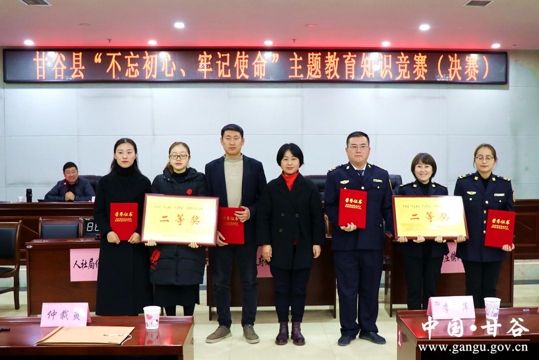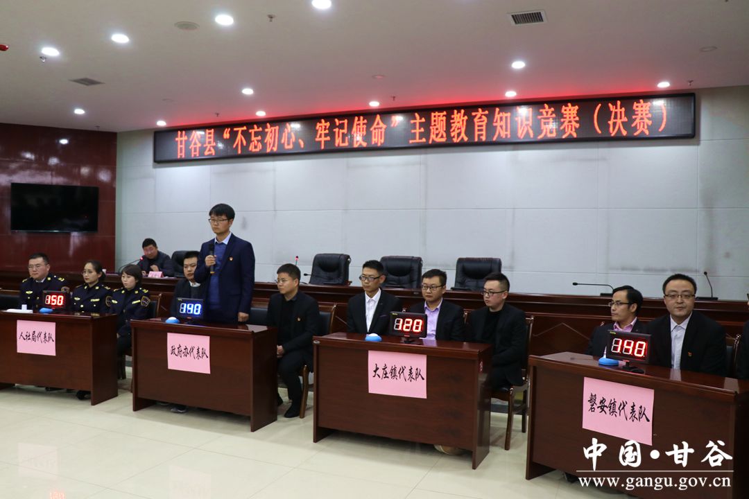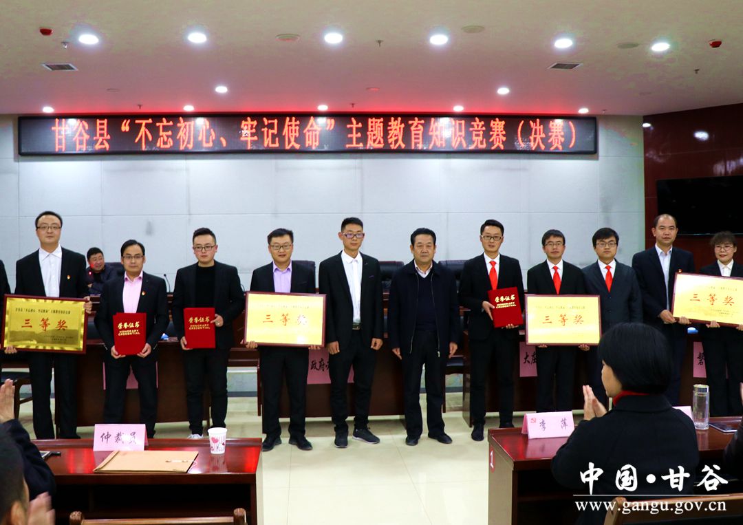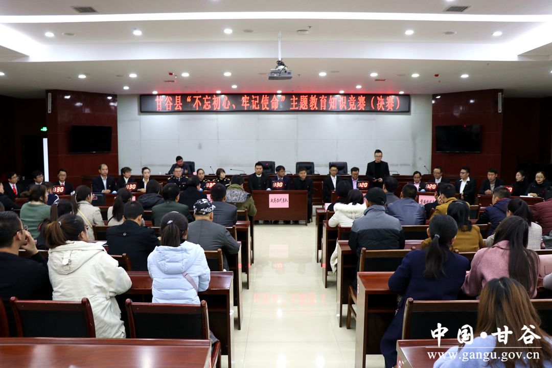 為全面深入學(xué)習(xí)貫徹黨的十九大精神和習(xí)近平新時(shí)代中國(guó)特色社會(huì)主義思想,扎實(shí)推進(jìn)主題教育活動(dòng)深入開(kāi)展,進(jìn)一步加強(qiáng)廣大黨員干部對(duì)“不忘初心、牢記使命”主題教育活動(dòng)的深入學(xué)習(xí)領(lǐng)會(huì),激勵(lì)全體黨員干部積極投身建設(shè)幸福美好新甘谷各項(xiàng)工作。11月22日,甘谷縣舉行“不忘初心、牢記使命”主題教育知識(shí)競(jìng)賽決賽?h人大常委會(huì)副主任薛希武,副縣長(zhǎng)李萍,縣政協(xié)副主席董德福出席指導(dǎo)。