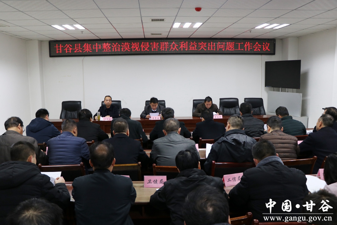為了認(rèn)真貫徹落實(shí)省、市在主題教育中集中整治漠視侵害群眾利益突出問題工作會議精神,11月26日,甘谷縣召開集中整治漠視侵害群眾利益突出問題工作會議?h委常委、組織部長葛彥迪出席會議并講話,承擔(dān)整治任務(wù)的牽頭單位和參與單位負(fù)責(zé)人參加會議。