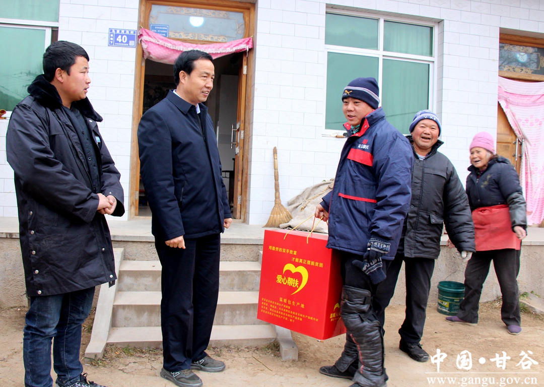 12月24日,甘谷縣委常委、宣傳部長張慶元深入白家灣鄉(xiāng)河溝村為貧困戶贈送“愛心溫暖包”。