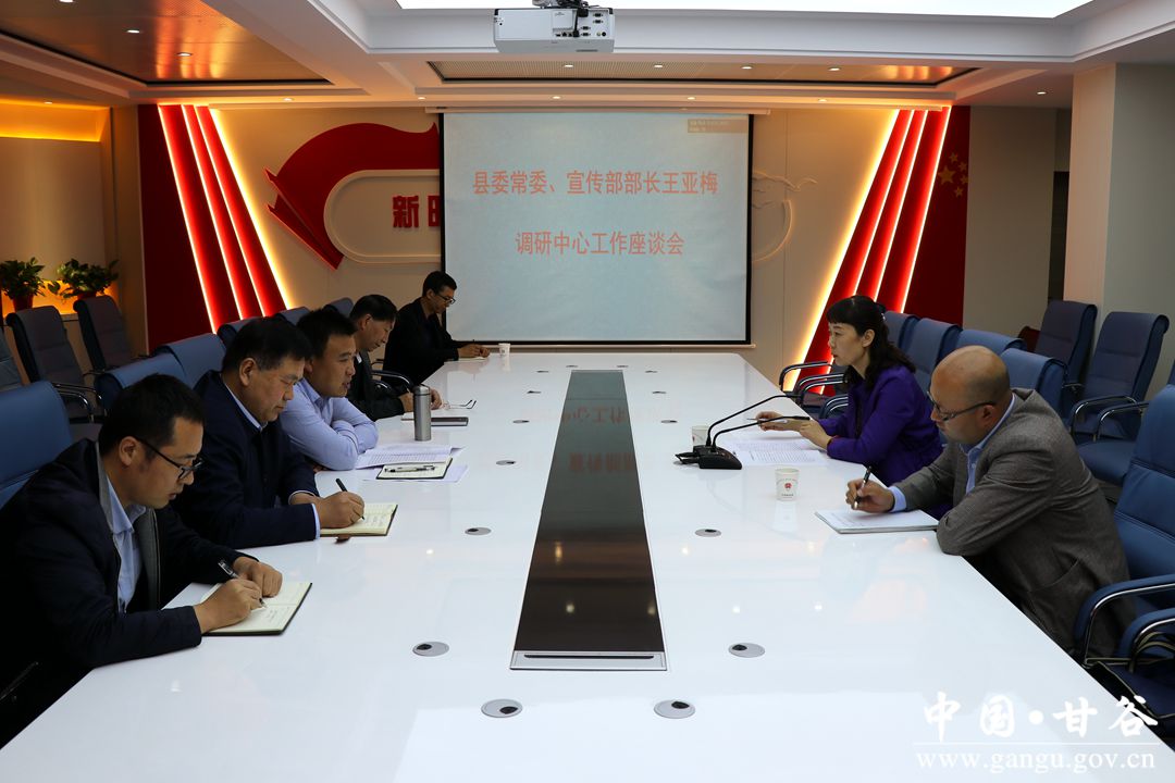 在調(diào)研座談中,王亞梅指出,縣融媒體中心要認(rèn)真做好新形勢(shì)下宣傳思想工作,承擔(dān)起舉旗幟、聚民心、育新人、興文化、展形象的使命任務(wù),堅(jiān)持融合發(fā)展理念,結(jié)合本地特色和群眾需求,創(chuàng)新傳播手段,推動(dòng)融媒體中心建設(shè)運(yùn)行,不斷提高新聞?shì)浾摰膫鞑チ、引?dǎo)力和影響力。要建好管好用好媒體融合的平臺(tái),著力加強(qiáng)新聞采編播隊(duì)伍建設(shè),提升服務(wù)群眾的能力,充分發(fā)揮融媒體中心引導(dǎo)群眾、服務(wù)群眾的作用;要加強(qiáng)“四力”建設(shè),不斷掌握新知識(shí)、熟悉新領(lǐng)域、開拓新視野,增強(qiáng)本領(lǐng)能力,講好甘谷故事,傳播好甘谷聲音。