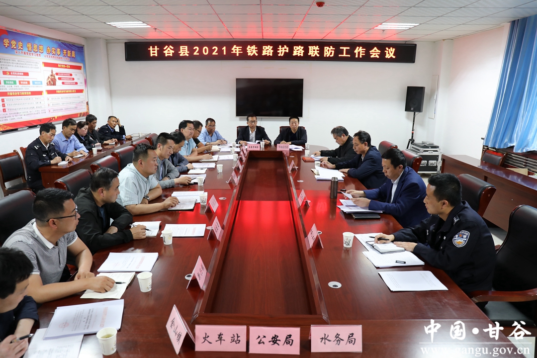 5月7日,甘谷縣召開2021年鐵路護(hù)路聯(lián)防工作會議?h委常委、政法委書記、縣鐵路護(hù)路聯(lián)防領(lǐng)導(dǎo)小組組長馬福勝出席會議并講話;縣委政法委、縣公安局、教育局、住建局、水務(wù)局、交運(yùn)局、市場監(jiān)管局、應(yīng)急管理局、鐵路公安甘谷派出所、甘谷火車站負(fù)責(zé)人,鐵路沿線各鎮(zhèn)政法委員,縣鐵路護(hù)路聯(lián)防巡查大隊部分隊員及線格員參加會議。