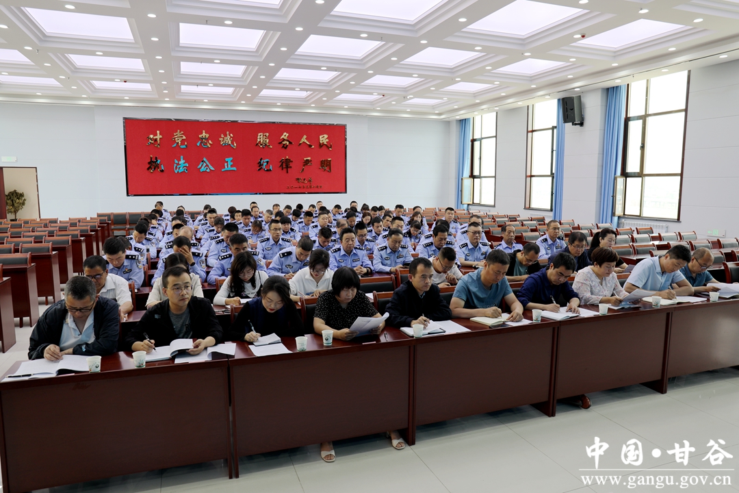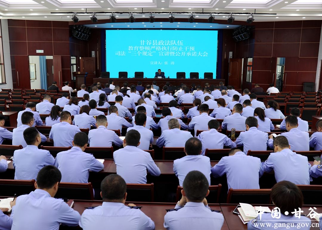 6月7日,甘谷縣政法隊(duì)伍教育整頓第一宣講組開展嚴(yán)格執(zhí)行防止干預(yù)司法“三個(gè)規(guī)定”宣講暨公開承諾活動(dòng) ,副縣長(zhǎng)、縣公安局局長(zhǎng)、縣政法隊(duì)伍教育整頓領(lǐng)導(dǎo)小組副組長(zhǎng)張濤作“三個(gè)規(guī)定”宣講報(bào)告?h直有關(guān)部門負(fù)責(zé)人、公安局全體干警參加了宣講和公開承諾大會(huì)。