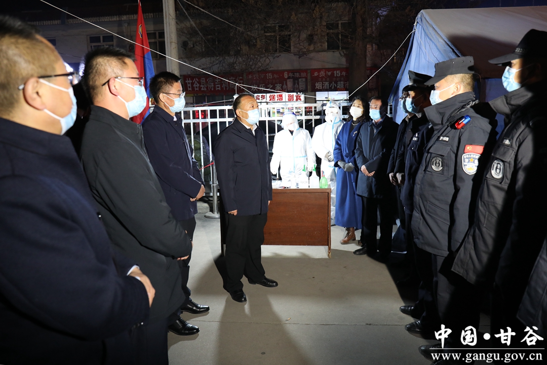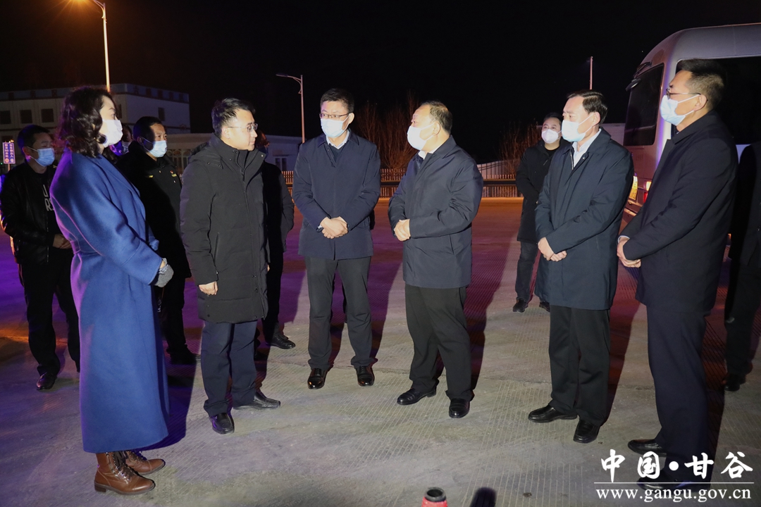 12月29日晚,甘谷縣委書記吳健,縣委副書記、縣長孫忠平督查疫情防控工作,看望慰問堅(jiān)守崗位的一線值守人員,強(qiáng)調(diào)要強(qiáng)化底線思維和憂患意識,保持高度警惕,以嚴(yán)而又嚴(yán)、細(xì)而又細(xì)、實(shí)而又實(shí)的作風(fēng),全力以赴外防輸入,集中精力守好防線,保障人民群眾生命安全和身體健康?h委常委、政法委書記杜興,副縣長張濤、劉強(qiáng)、金輝一同督查。