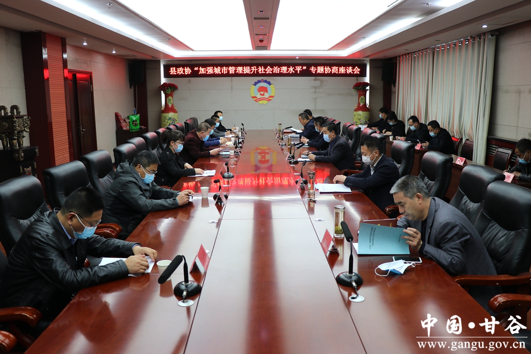 3月30日,甘谷縣召開加強(qiáng)城市管理提升社會治理水平專題協(xié)商座談會?h政協(xié)黨組書記、主席曹明忠出席會議并講話;縣委常委、副縣長張秉春,縣政協(xié)副主席田小龍、馬清平出席會議;縣政協(xié)副主席郭有生主持會議;參與前期調(diào)研的各位委員和相關(guān)部門負(fù)責(zé)人參加會議。