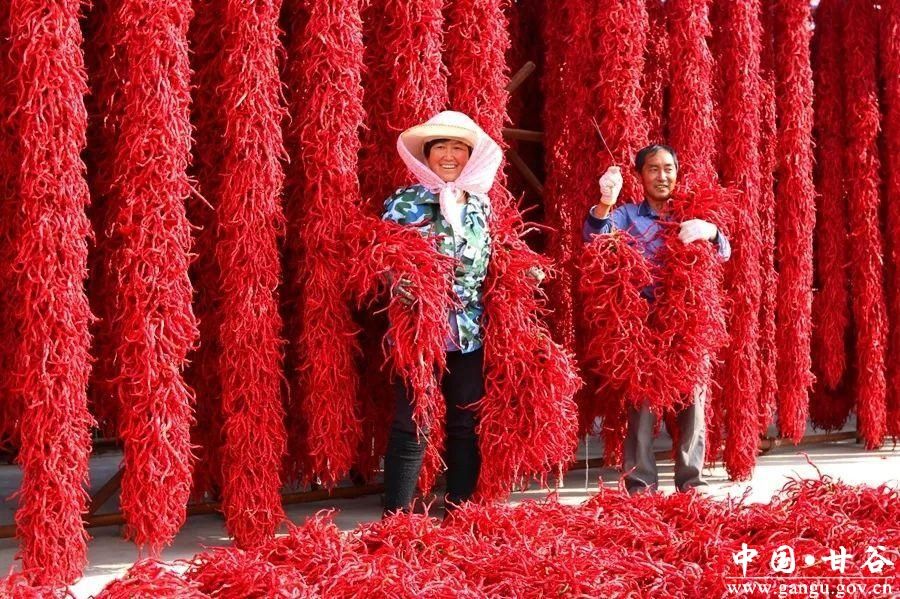 甘谷辣椒至今已有400多年的種植歷史,由于獨(dú)特的土壤、氣候等自然條件,甘谷辣椒色澤光亮、肉厚油多、角條細(xì)長(zhǎng)、皺褶均勻、辣味香濃,以線椒為主的60多個(gè)品種出口20多個(gè)國(guó)家和地區(qū),成為全國(guó)辣椒生產(chǎn)基地之一。近年來(lái),甘谷縣把做大做強(qiáng)辣椒產(chǎn)業(yè)作為實(shí)現(xiàn)農(nóng)民增收致富的重要舉措,著力打造甘谷辣椒品牌,努力提升甘谷辣椒馳名度和影響力,全力拓寬銷售市場(chǎng)。全縣辣椒種植面積達(dá)5.6萬(wàn)畝,預(yù)計(jì)總產(chǎn)量13萬(wàn)噸,產(chǎn)值達(dá)3.5億元左右,辣椒已成為一張獨(dú)具特色的“紅”色亮麗名片。