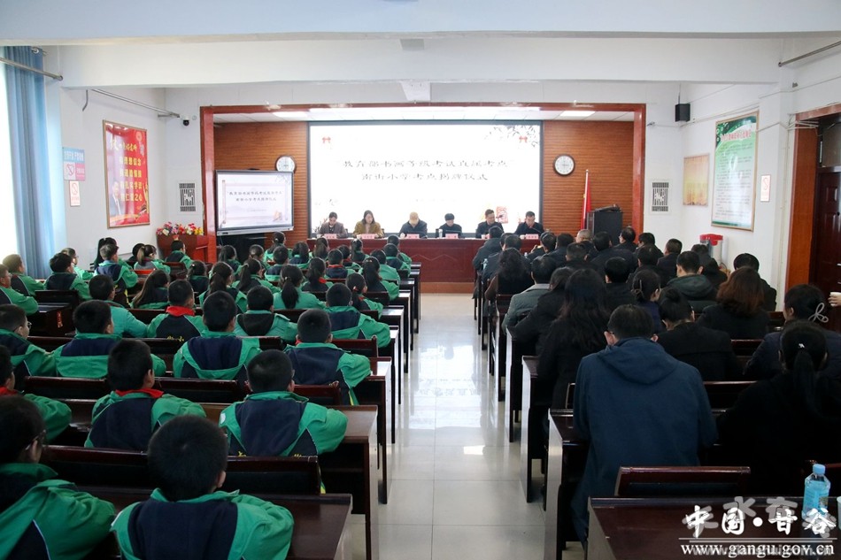 新甘谷訊【記者 李宛郁】12月21日,甘谷縣教育部書畫等級考試直屬考點揭牌儀式在南街小學舉行。西北師范大學繼續(xù)教育學院副院長姚軍,教育部書畫等級考試甘肅省考試辦公室主任吳正升,教育部書畫等級考試甘肅省考試辦公室副主任王彩霞,教育部書畫等級考試甘肅省蘭州市考試辦公室主任唐玉媛,縣委常委、宣傳部部長范慧出席儀式。部分學區(qū)、學校校長、南街小學書法、繪畫社團師生,共計100余人參加儀式?h委教育工委書記、縣教育局黨組書記、局長李果香主持儀式。