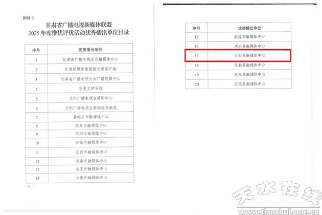 新甘谷訊【記者頡定武】近日,甘肅省廣播電視局正式公布甘肅省廣播電視新媒體聯(lián)盟2025年度推優(yōu)評優(yōu)活動評審結果,甘谷縣融媒體中心憑借扎實的工作成效、優(yōu)質的傳播內容和創(chuàng)新的運營模式,成功斬獲“優(yōu)秀播出單位”榮譽稱號,這是省廣電局及新媒體聯(lián)盟對該中心2025年度新媒體傳播工作的高度肯定與有力褒獎。