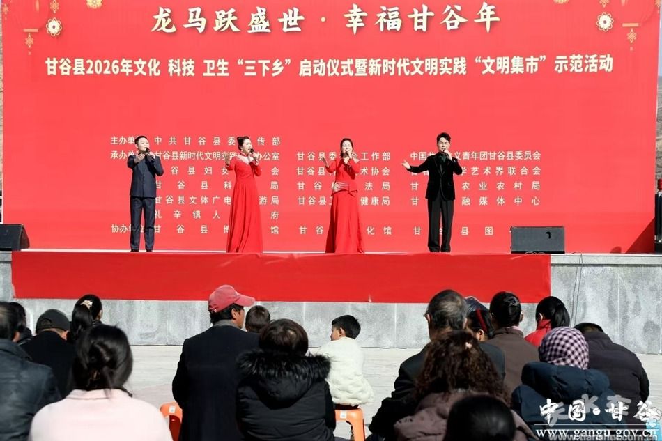 新甘谷訊【記者 黃鑫】冬日暖陽映鄉(xiāng)野,文明服務(wù)潤民心。2月6日,甘谷縣2026年文化科技衛(wèi)生“三下鄉(xiāng)”啟動儀式暨新時代文明實踐“文明集市”示范活動,在禮辛紅色文化旅游景區(qū)熱鬧啟幕。不同于尋常趕集,這里鑼鼓喧天、墨香氤氳,科普、義診、文藝表演等服務(wù)一應(yīng)俱全,讓鄉(xiāng)親們在歡聲笑語中,收獲了滿滿的溫暖與實惠。