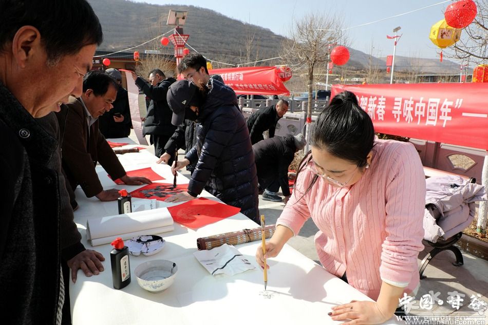 舞臺周邊,一個個特色“服務(wù)攤位”有序排列,組成了一場別開生面的“文明集市”,把服務(wù)真正送到了鄉(xiāng)親們的心坎上?h文聯(lián)的書法家們被群眾圍得水泄不通,大家凝神揮毫、筆走龍蛇,一幅幅寓意吉祥的春聯(lián)、一個個蒼勁有力的“!弊帜E未干,就被迫不及待的鄉(xiāng)親們領(lǐng)走!敖o我寫一副‘五谷豐登家興旺’!”“我要兩個‘!,貼大門上!”現(xiàn)場歡呼聲不斷,大紅的春聯(lián)鋪滿桌面,濃濃的年味在墨香中蔓延。