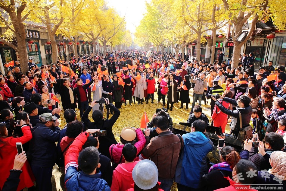 歌聲響徹云霄,在寒冷的季節(jié)傳遞著一份溫暖。天水的首個(gè)“狂歡節(jié)”結(jié)束了,人們?nèi)匀挥悬c(diǎn)依依不舍,F(xiàn)場的游人們更多的是期待,期待在以后每年銀杏落葉時(shí)節(jié),在天水的“黃金大道”上繼續(xù)上演“狂歡節(jié)”,讓年輕人,讓普通老百姓,讓我們的傳統(tǒng)文化,盡情的嗨起來。