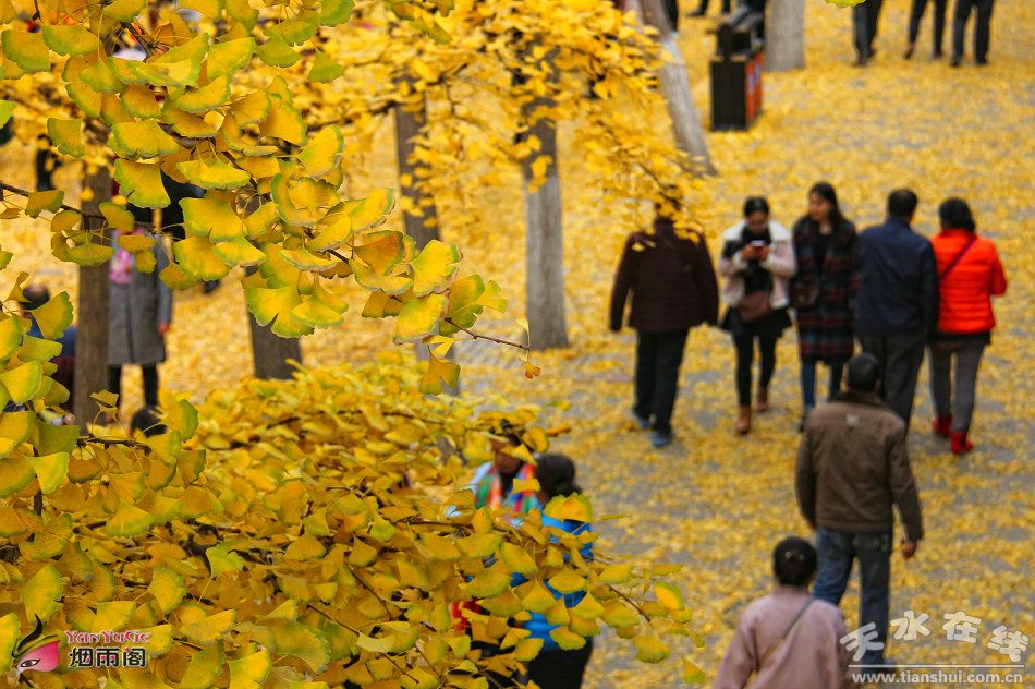 天水在線報(bào)道 天水市秦州區(qū)青年北路(黃金大道),因銀杏落葉鋪就“黃金大道”,而引發(fā)群眾自發(fā)上演的全城“狂歡節(jié)”進(jìn)入最后一天。