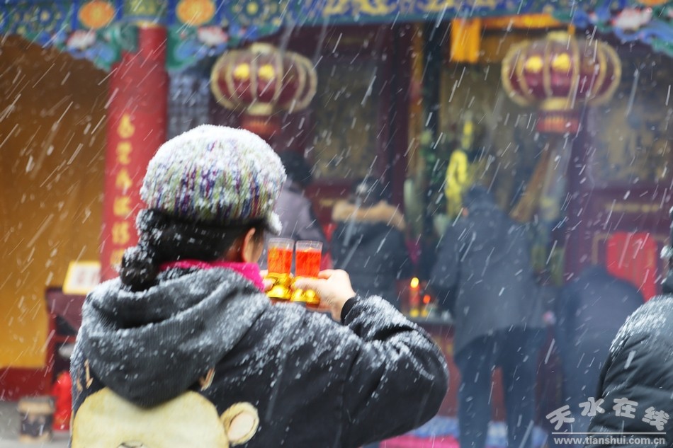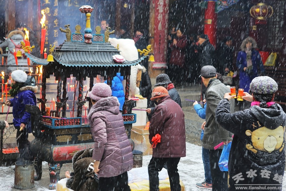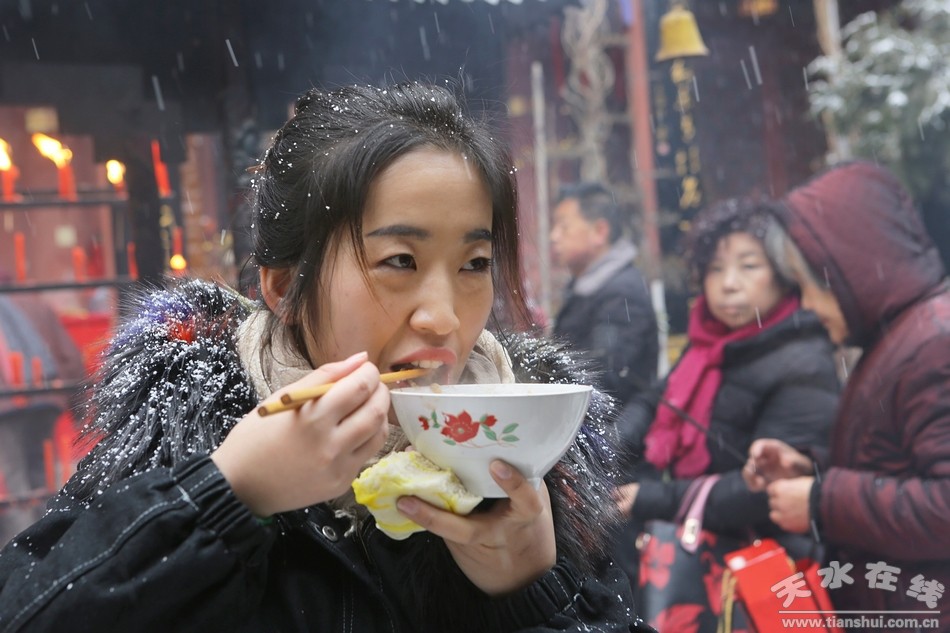 天水在線1月24日?qǐng)?bào)道 今日臘月初八日,也就是中國(guó)傳統(tǒng)的“臘八節(jié)”,古城天水,瑞雪紛飛,為節(jié)日里的天水增添了一抹濃濃的節(jié)日氛圍。