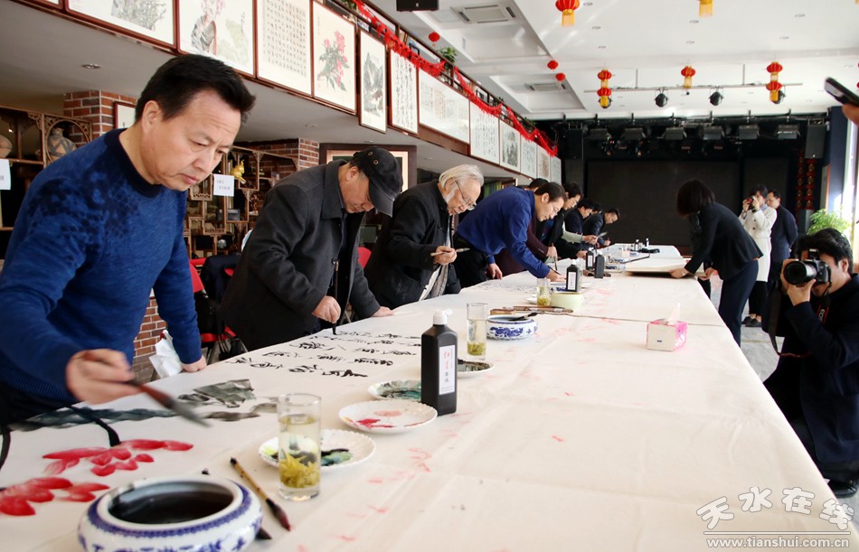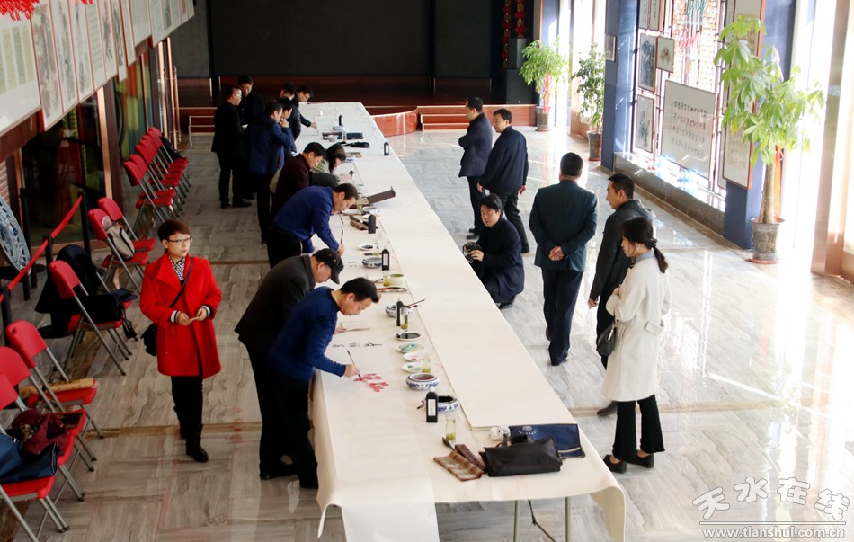 天水在線報道 2月28日,農(nóng)歷正月十三日。那邊廂,天水伏羲廟春祭伏羲活動拉開大幕,秦州區(qū)4500盞花燈正式“點燈”,麥積區(qū)社火匯演鬧新春,天水市秦劇團承擔的伏羲廟會首場廟戲鳴鑼開演。這邊廂,在甘肅臻美和聲藝術(shù)空間,由天水市文化館館長李靖,天水市書法家協(xié)會主席周宇春,天水市美術(shù)家協(xié)會主席賈利珠共同發(fā)起的現(xiàn)場創(chuàng)作25米長卷為李曉東同志送行活動正在舉行。