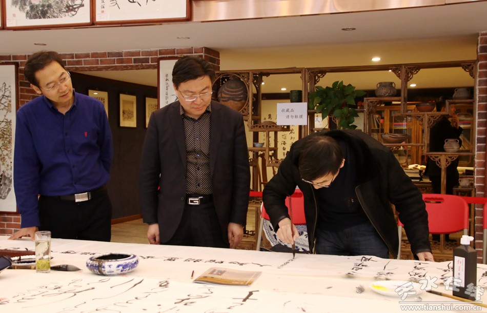 為表達對李曉東同志在天水任職期間為天水文藝事業(yè)繁榮發(fā)展作出的積極貢獻,天水市書畫界發(fā)起了 此次現(xiàn)場創(chuàng)作送行活動。同時,天水在線還將李曉東同志創(chuàng)作并經(jīng)天水在線發(fā)布的十五篇散文結(jié)集成冊相贈,以示留念,表達對李曉東同志為宣傳天水作出的積極貢獻的感謝之意。