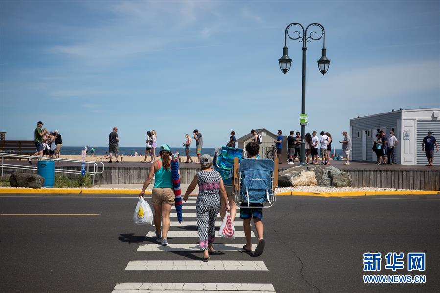 5月16日,人們走向美國(guó)新澤西州貝爾馬海灘。 新華社發(fā)(郭克攝)