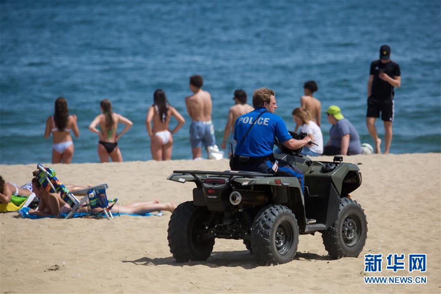 5月16日,在美國(guó)新澤西州貝爾馬海灘,警察在沙灘上巡邏。 新華社發(fā)(郭克攝)