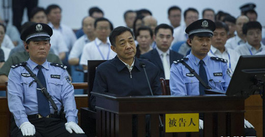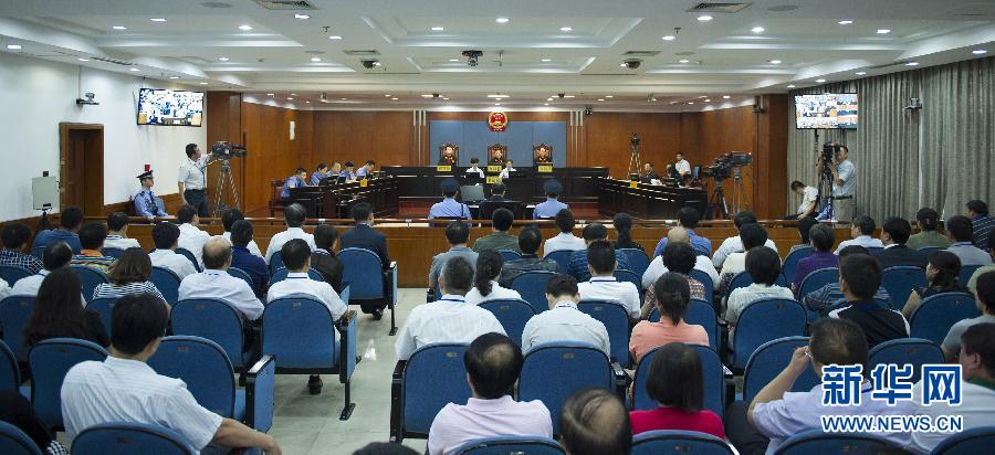 薄熙來受賄、貪污、濫用職權(quán)案,經(jīng)過近5天公開開庭審理,8月26日13時04分一審?fù)徑Y(jié)束,法庭宣布依法擇期宣判。這是8月26日拍攝的庭審現(xiàn)場。新華社記者 謝環(huán)馳 攝