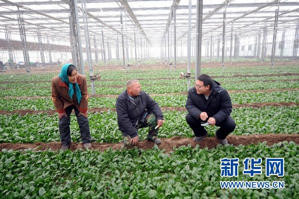 12月16日,聯(lián)合社工作人員(右一)為菠菜種植戶提供技術(shù)指導(dǎo)。河北省香河縣安平鎮(zhèn)將18個(gè)農(nóng)村種養(yǎng)殖合作社組合成立了專業(yè)合作社聯(lián)合社,共涉及農(nóng)戶近千戶,經(jīng)營(yíng)范圍涉及各種無(wú)公害蔬菜、果樹、食用菌、花卉、花生、薯類、牛、羊、家禽等,通過(guò)聯(lián)合社,為農(nóng)民提供技術(shù)指導(dǎo),聯(lián)絡(luò)客商,拓展農(nóng)產(chǎn)品銷路。新華社記者李曉果攝