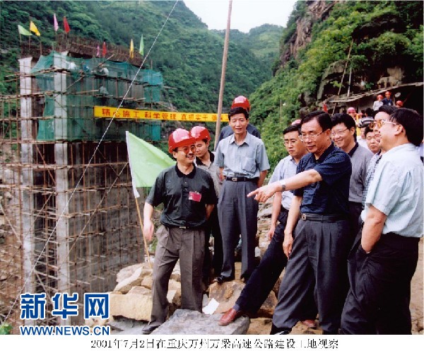 2001年7月2日賀國強(qiáng)在重慶萬州萬梁高速公路建設(shè)工地視察。