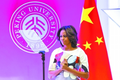 昨天上午,美國(guó)總統(tǒng)奧巴馬夫人米歇爾到北京大學(xué)訪問,發(fā)表了約20分鐘的演講。