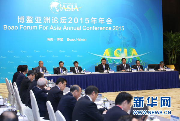 3月29日,國家主席習(xí)近平在海南省博鰲國賓館同出席博鰲亞洲論壇2015年年會的中外企業(yè)家代表座談。 新華社記者 龐興雷 攝