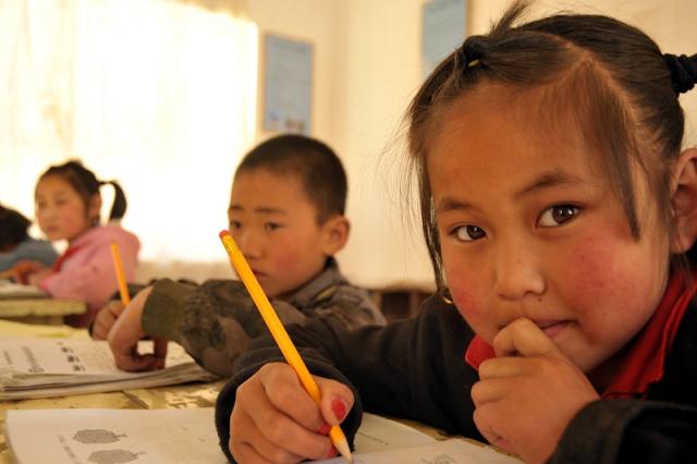 (2015年5月12日,甘肅環(huán)縣樊家川鄉(xiāng)關溝小學二年級學生在教室里做作業(yè)。新華社記者郭剛攝)