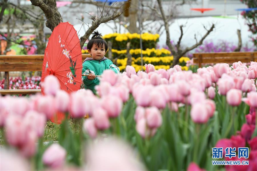 4月8日,在榆中縣李家莊田園綜合體內(nèi),小朋友在郁金香花叢中嬉戲。新華社記者范培珅攝