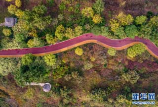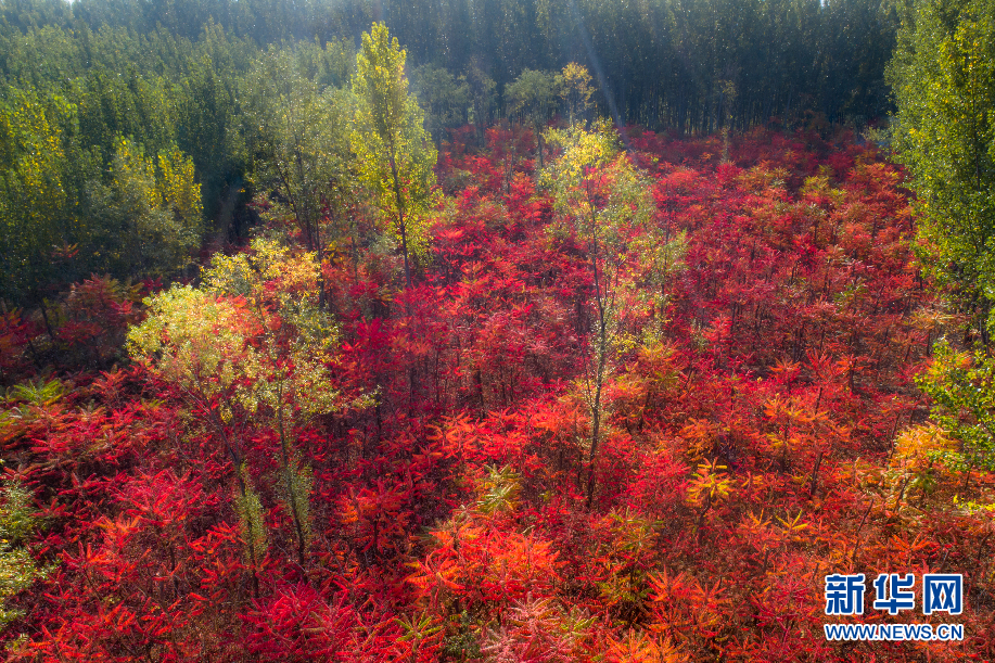 10月27日,這是在山東省高青縣黃河大堤上拍攝的紅葉。新華網(wǎng)發(fā) (張維堂攝)