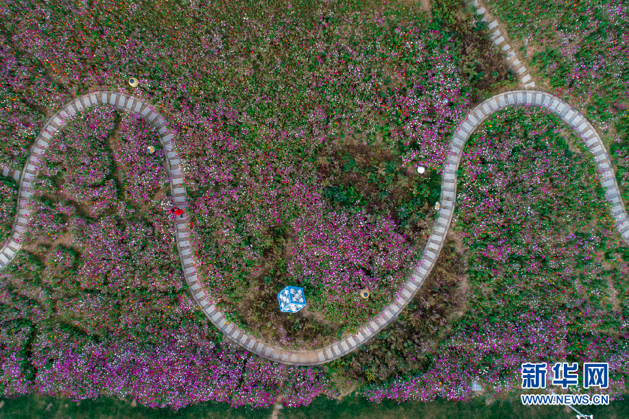 10月23日,市民在山東省高青縣黃河安瀾花海游玩。新華網(wǎng)發(fā) (張維堂攝)