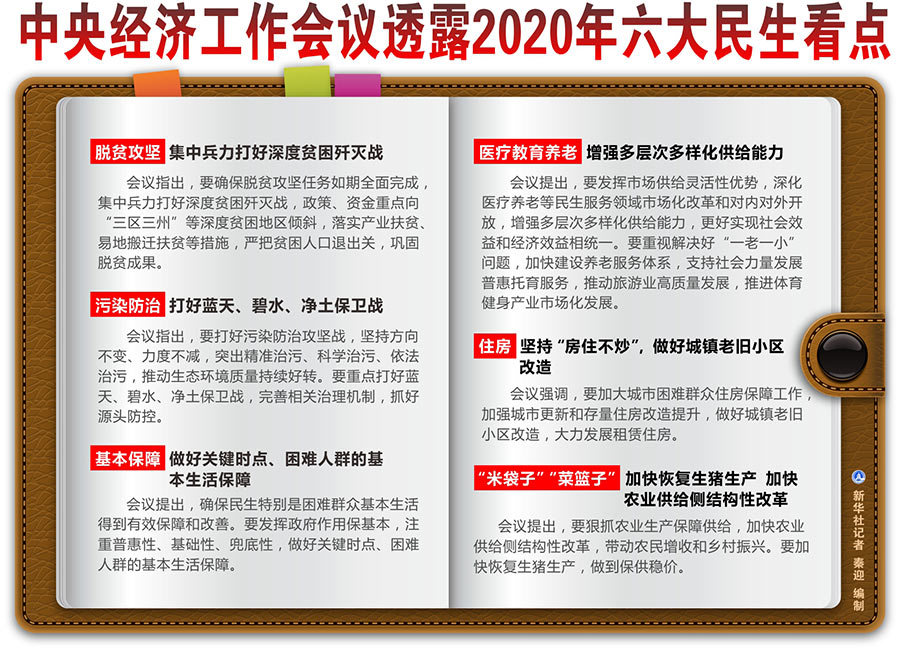 新華社北京12月12日電 題:中央經(jīng)濟(jì)工作會(huì)議透露2020年六大民生看點(diǎn)