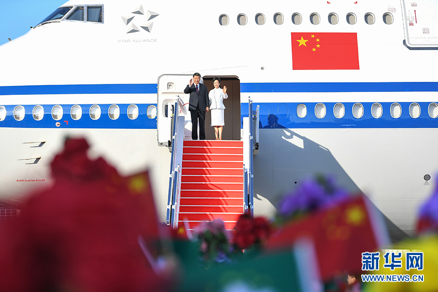 12月18日,中共中央總書記、國(guó)家主席、中央軍委主席習(xí)近平乘專機(jī)抵達(dá)澳門,出席將于20日舉行的慶祝澳門回歸祖國(guó)20周年大會(huì)暨澳門特別行政區(qū)第五屆政府就職典禮并視察澳門。這是習(xí)近平和夫人彭麗媛走出艙門,向歡迎人群揮手致意。 新華社記者 謝環(huán)馳 攝