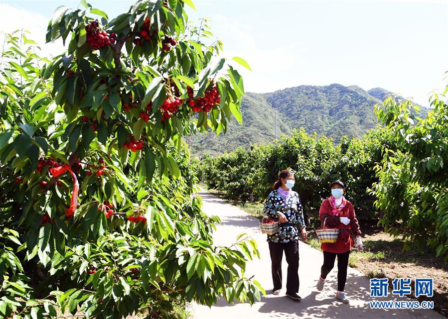 5月20日,北京市海淀區(qū)溫泉鎮(zhèn)楊家莊村櫻桃采摘園的工作人員采摘櫻桃歸來。 近日,北京市海淀區(qū)溫泉鎮(zhèn)楊家莊村的櫻桃進入成熟期,各采摘園已做好準備迎接市民前來采摘品嘗。 新華社記者 任超 攝
