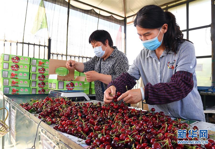 5月20日,北京市海淀區(qū)溫泉鎮(zhèn)楊家莊村櫻桃采摘園的工作人員將櫻桃裝箱。