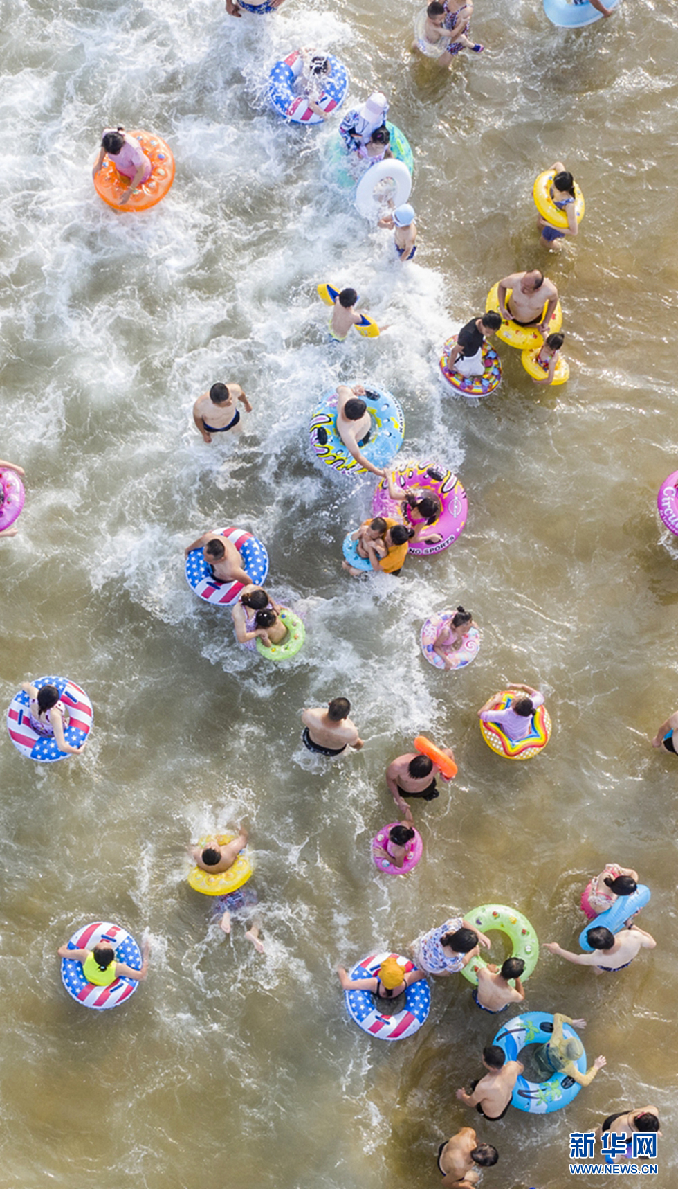 8月16日,游人在青島西海岸金沙灘海水浴場(chǎng)消暑休閑。新華網(wǎng)發(fā)(王華 攝)