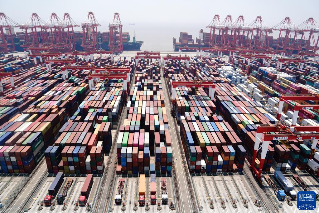 5月17日拍攝的上海洋山深水港四期自動化碼頭。新華社記者 丁汀 攝