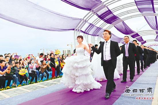 浪漫的紫金花海為媒,熱情的金昌人民作證。9月2日,來自全國各地的46對新婚夫婦和6對金銀婚夫婦在此舉辦“薰衣草之約”集體婚禮,共同演繹了一場浪漫溫馨的婚禮盛典。