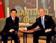 南京大學國際關(guān)系學院教授盧明華則認為,還值得一提的是2004年11月20日,胡錦濤和布什在智利首都圣地亞哥市出席亞太經(jīng)合組織領導人非正式會議期間的會晤。