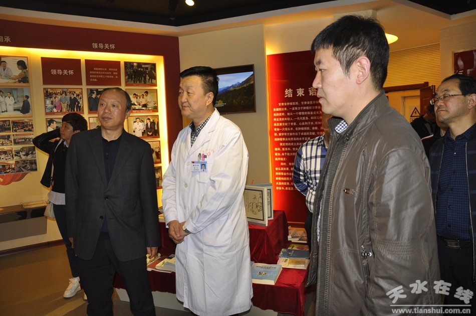 參觀了甘肅省腫瘤醫(yī)院院史館、治未病中心、食療營養(yǎng)科、綜合康復(fù)中心等。院長夏小軍介紹了醫(yī)院歷史、現(xiàn)狀、未來的發(fā)展規(guī)劃,及腫瘤現(xiàn)狀和應(yīng)對治療腫瘤的研究方向等。
