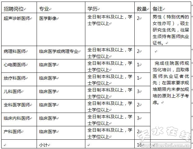 天水市第一人民醫(yī)院招聘編外醫(yī)生公告